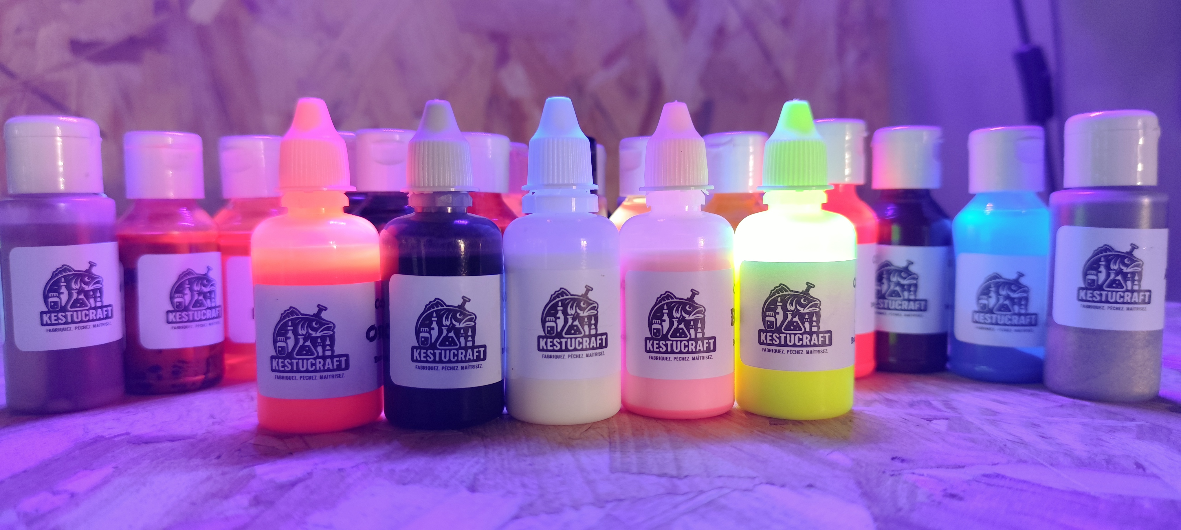 - Colorants liquides et poudres (classiques, UV/Fluo, nacrés, pearl, duochrome…)